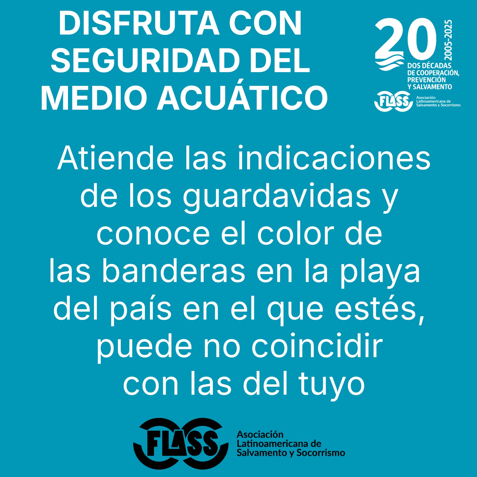 La Asociación Latinoamericana de Salvamento y Socorrismo FLASS ha puesto en marcha una campaña de difusión de consejos para un disfrute seguro del medio acuático, que se difunde a través de redes sociales en español y portugués.