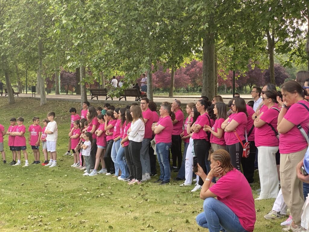 La concejala de Participación Ciudadana y Deportes del Ayuntamiento de Valladolid, Mayte Martinez, durante el acto, en presencia de la familia de Héctor Merino y otros asistentes al acto.