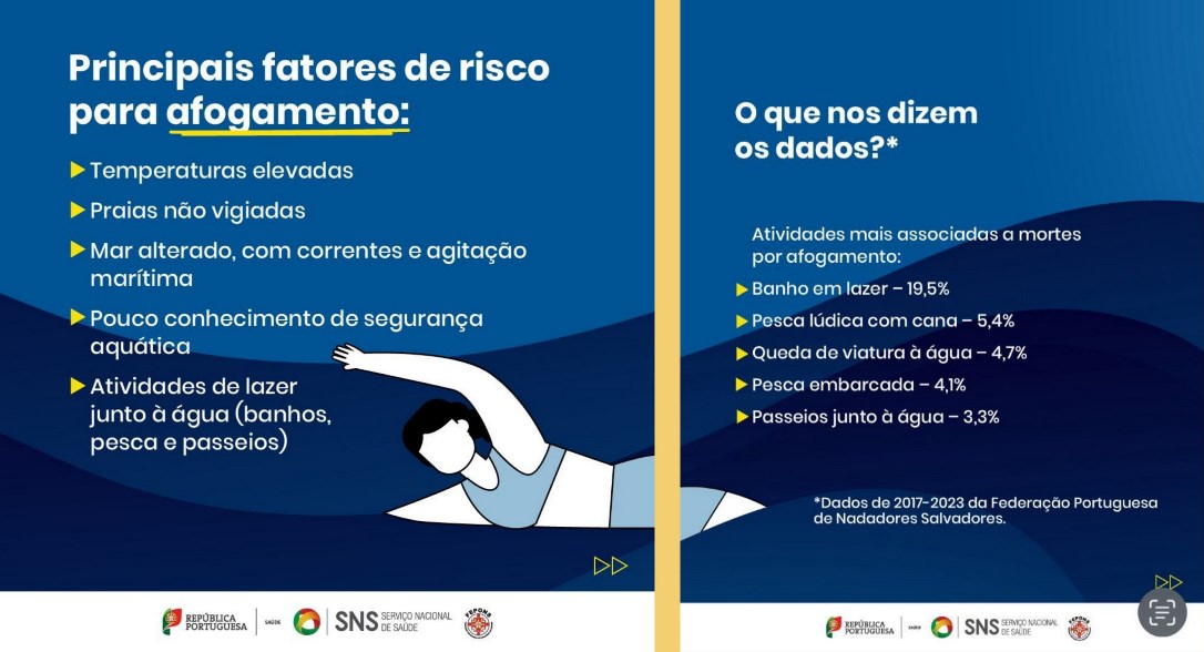 Por primera vez, la Federaçao Portuguesa de Nadadores Salvadores (FEPONS) une esfuerzos con la Dirección General de Salud del Ministerio de Salud de Portugal, en una campaña nacional de prevención del ahogamiento.